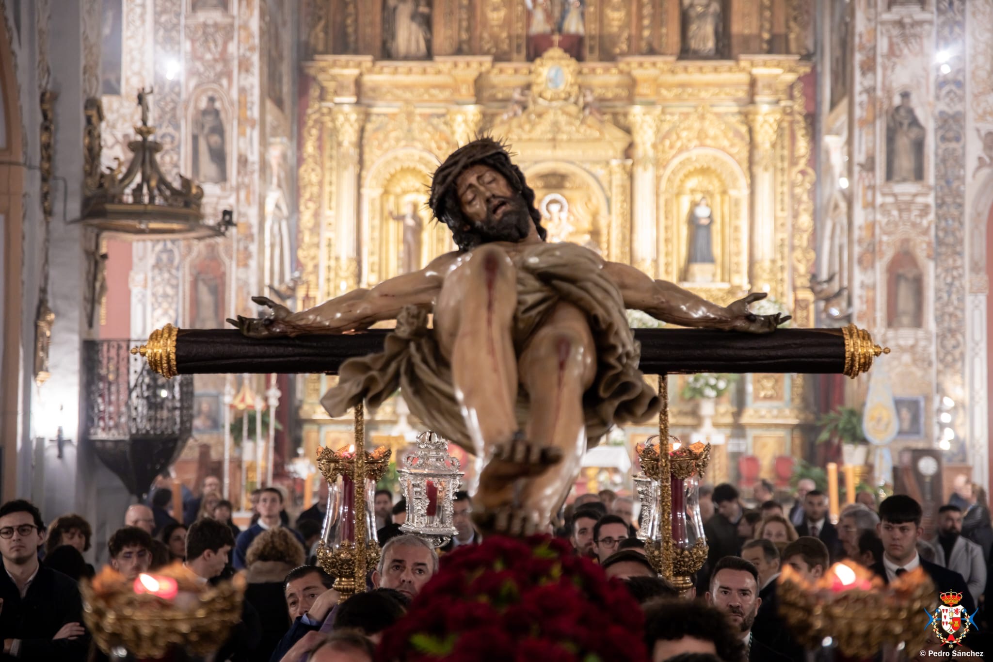 El Señor de las Cinco Llagas presidió la Eucaristía de Cenizas en el presbiterio de la Basílica; junto a Él, hermanos, fieles