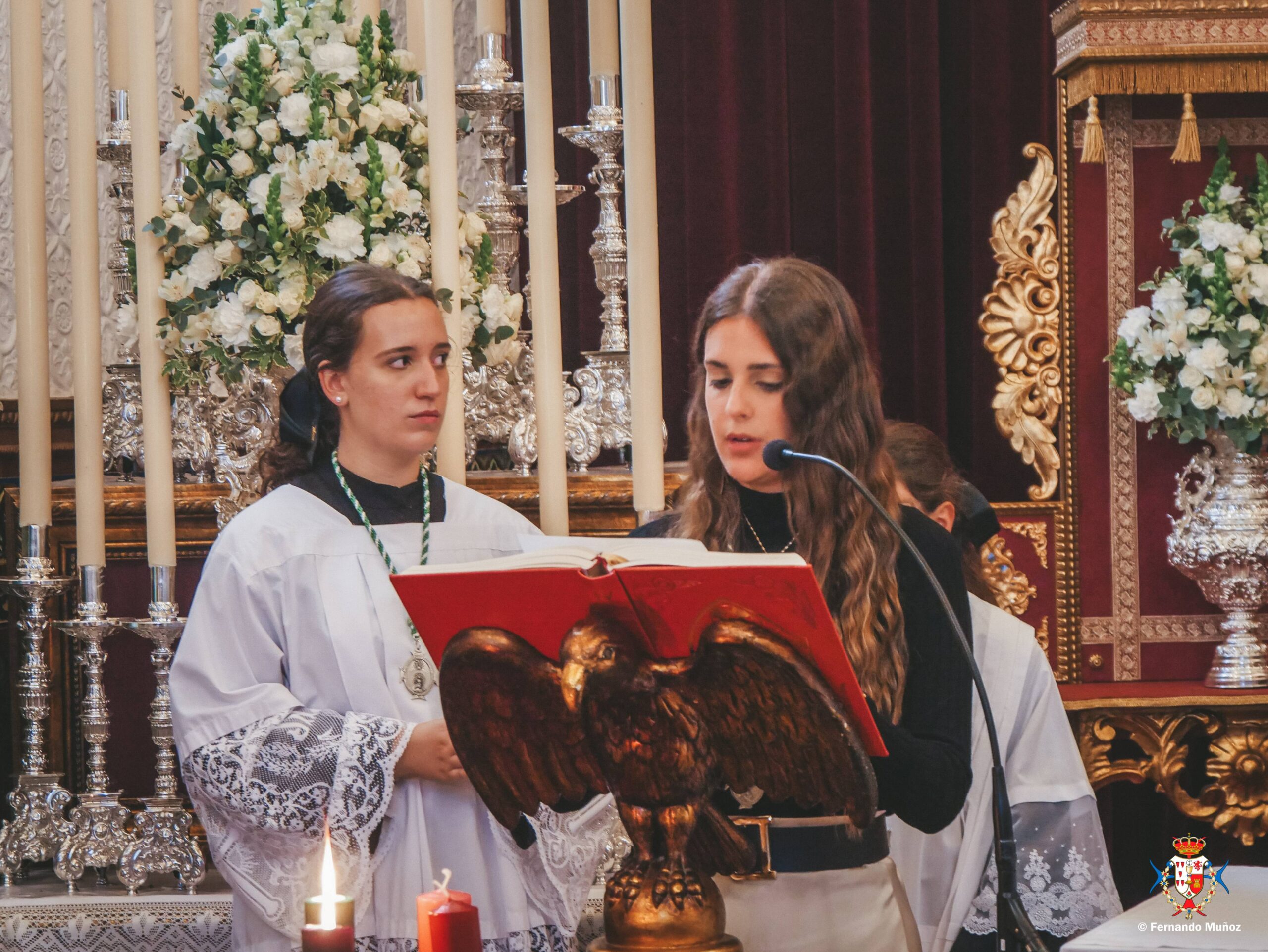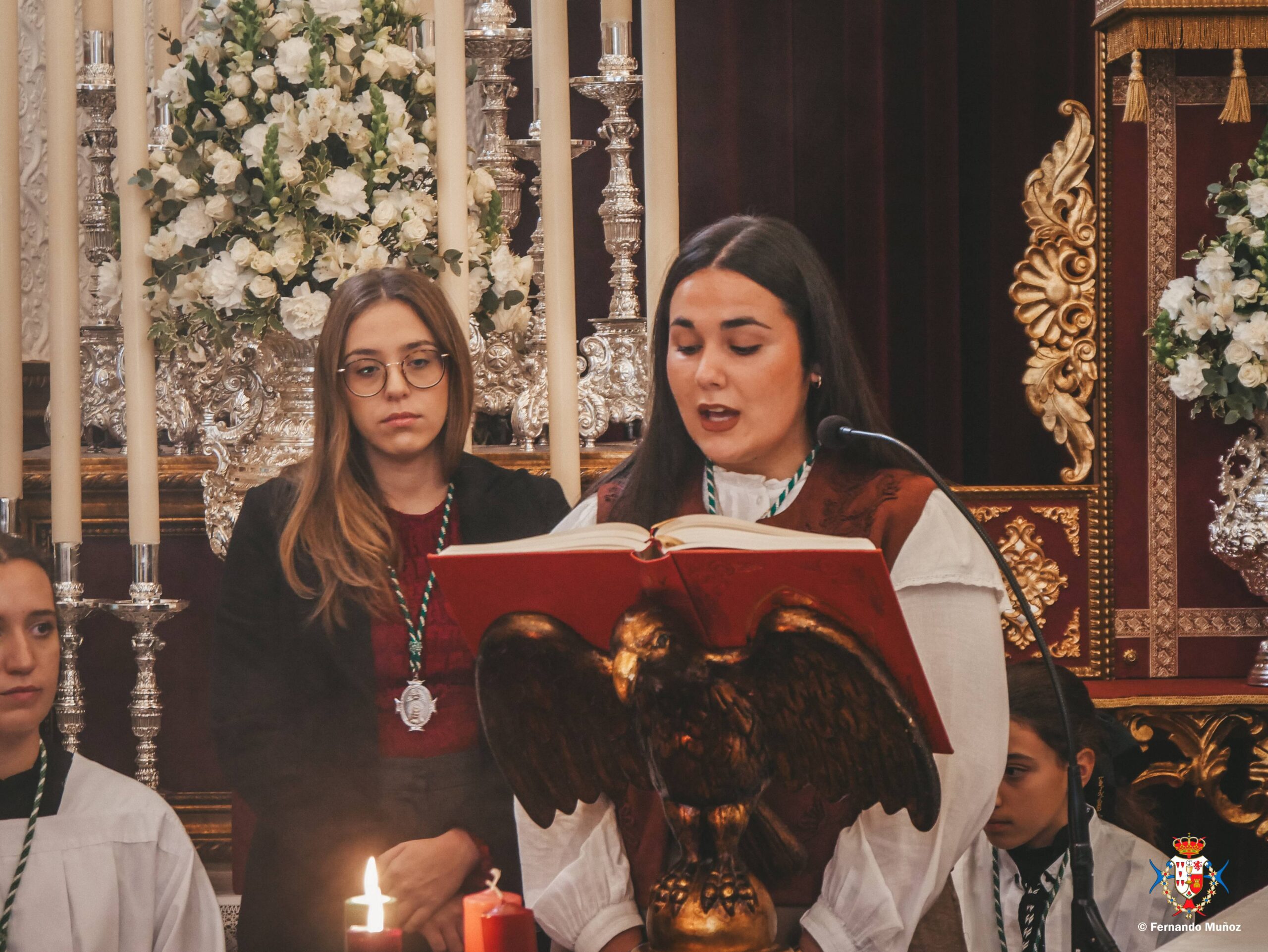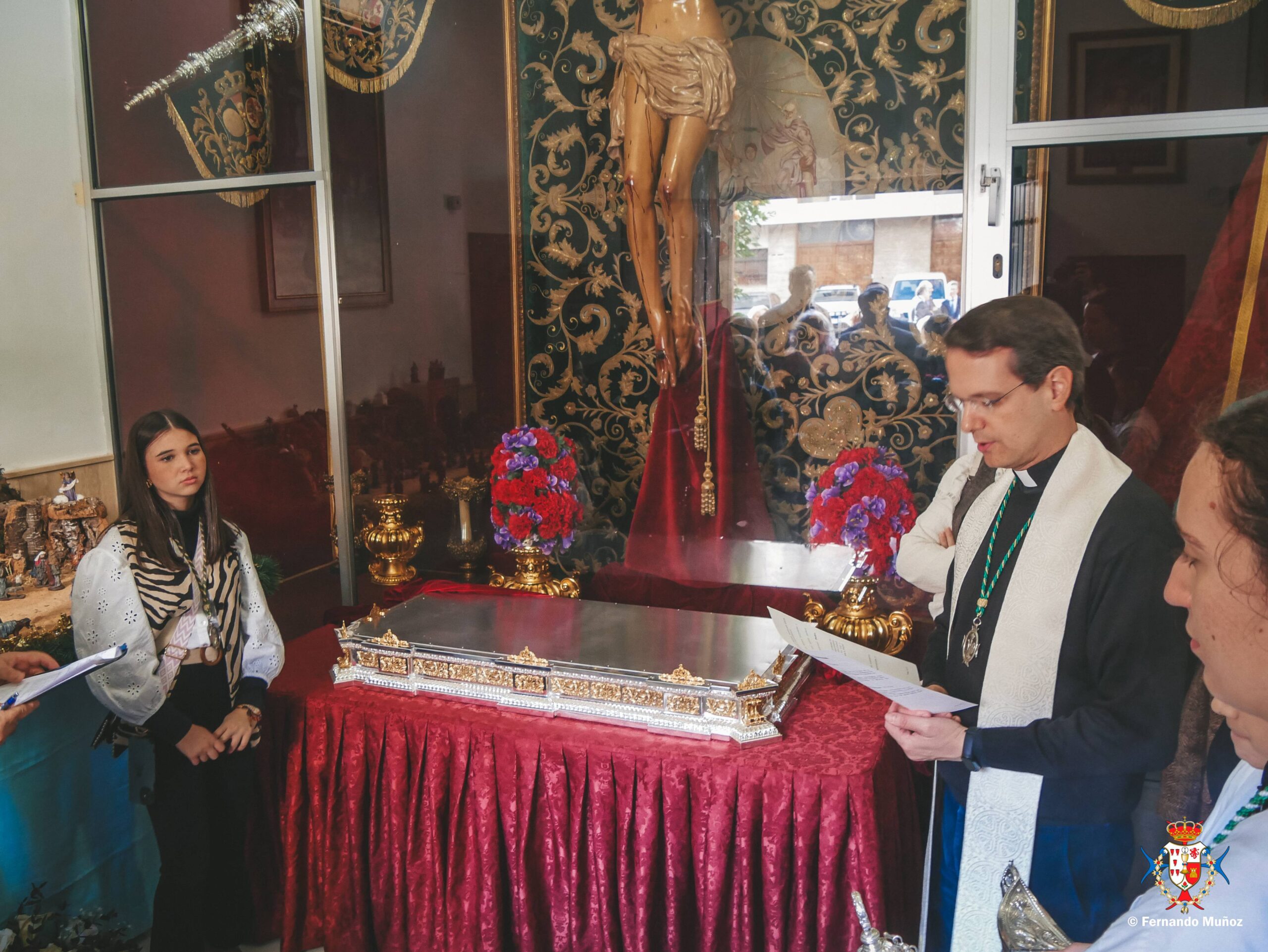 Asi mismo, tras la Eucaristía Solemne en su honor tuvo lugar la bendición del Belen instalado en nuestra casa de Hermandad por el Grupo Infantil así como de la sobrepeana de plata realizada por el taller de orfebrería de Hermanos Delgado para Nuestra Señora de la Esperanza.