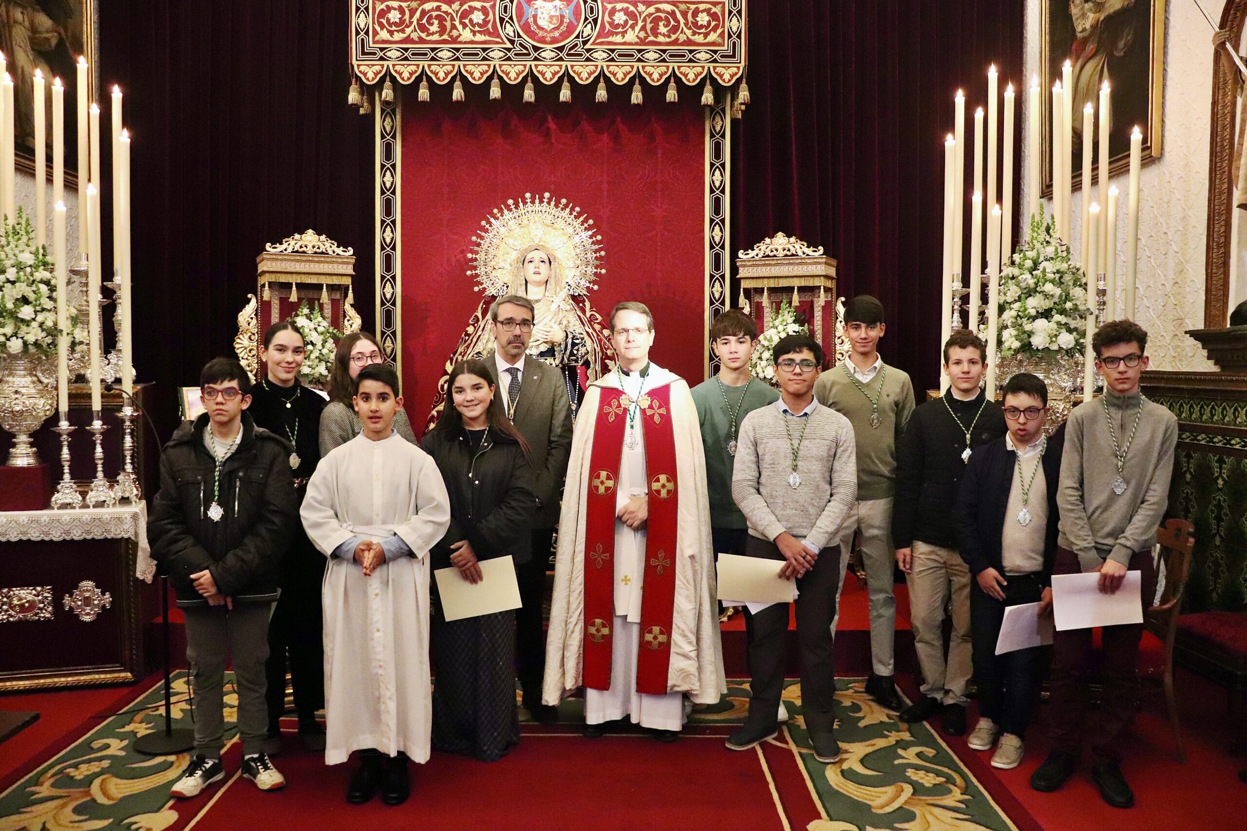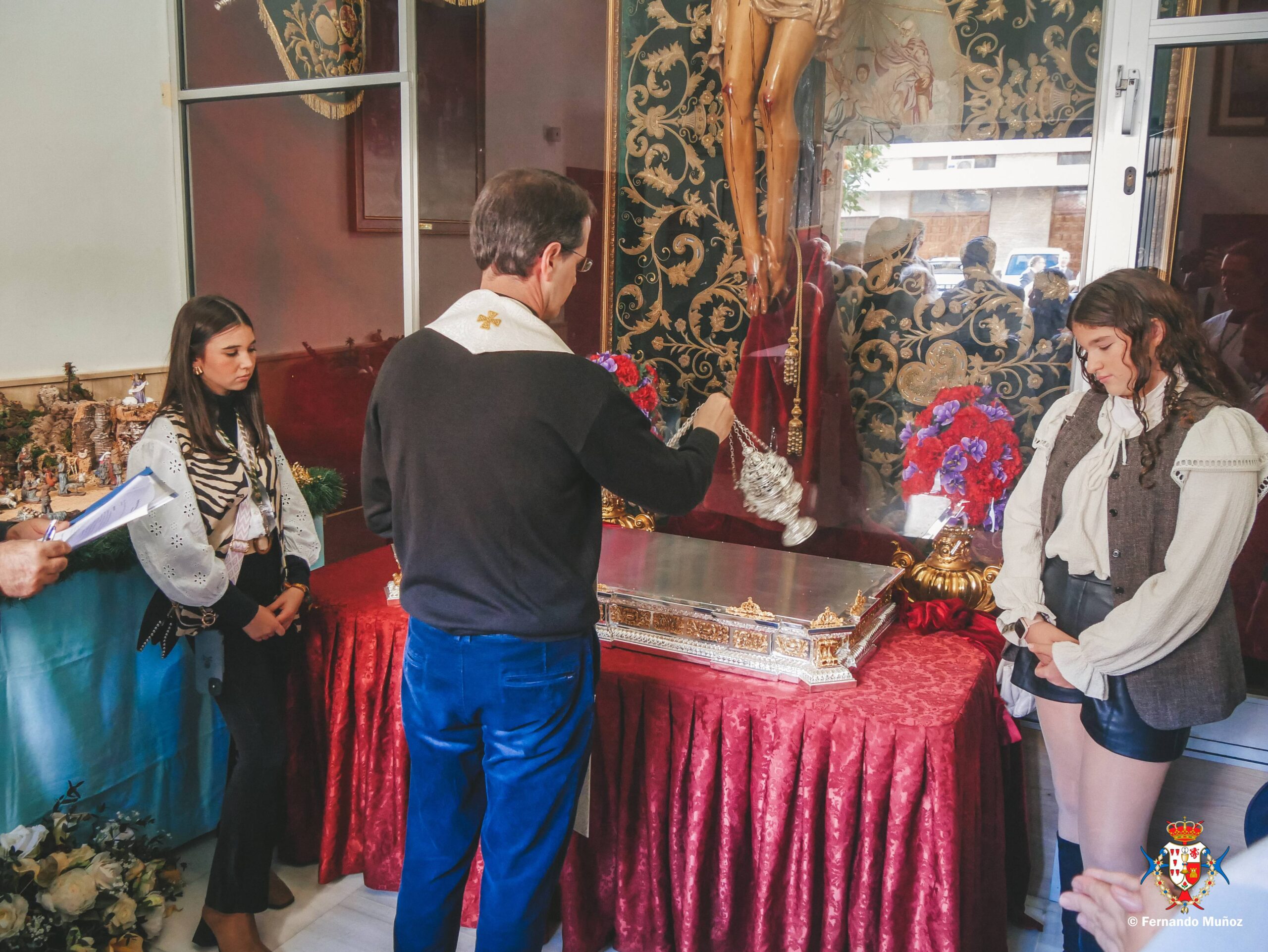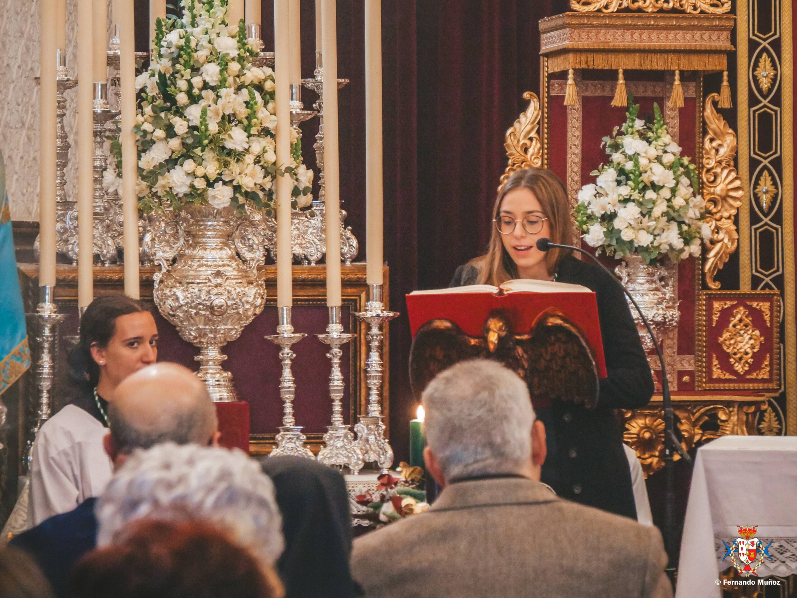Asimismo, tras la Eucaristía Solemne en su honor tuvo lugar la bendición del Belén instalado en nuestra casa de Hermandad por el Grupo Infantil así como de la sobrepeana de plata realizada por el taller de orfebrería de Hermanos Delgado para Nuestra Señora de la Esperanza.