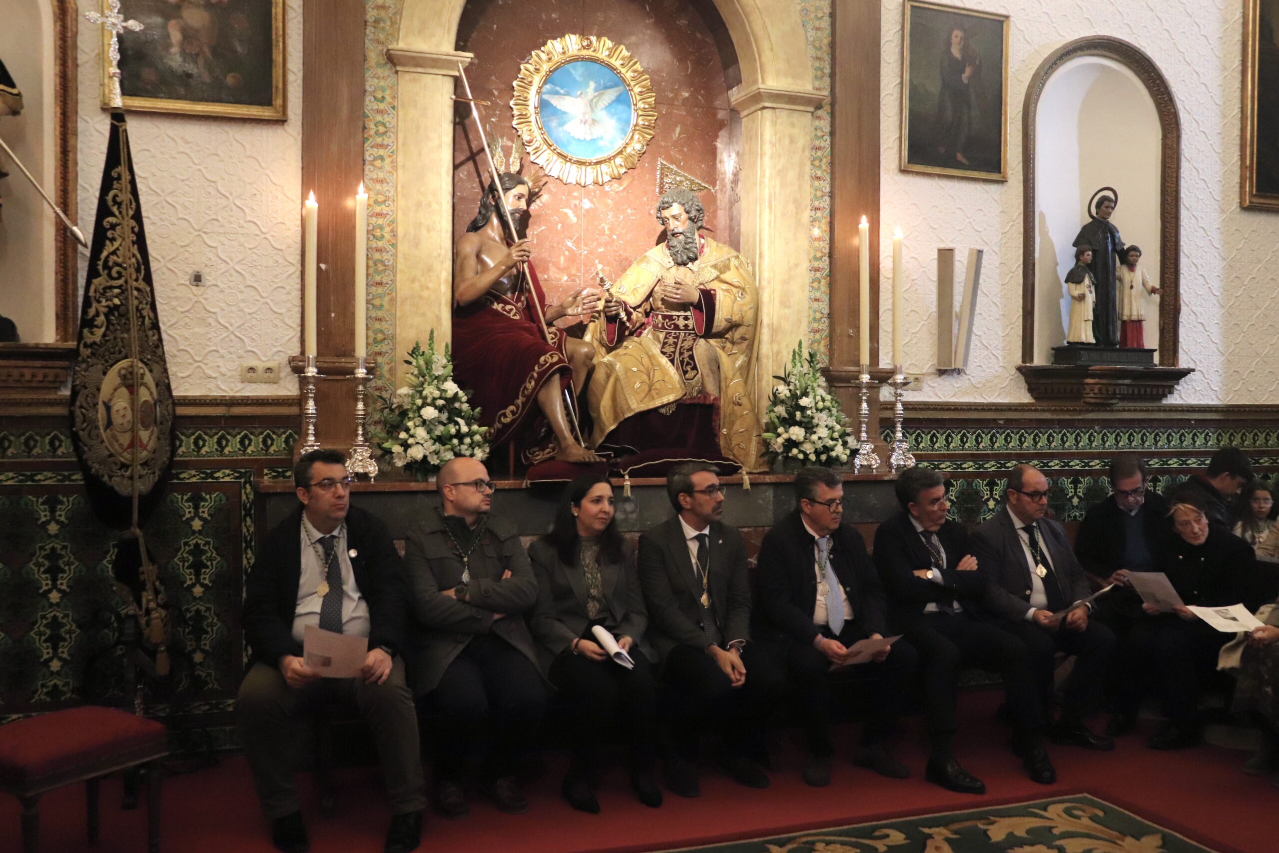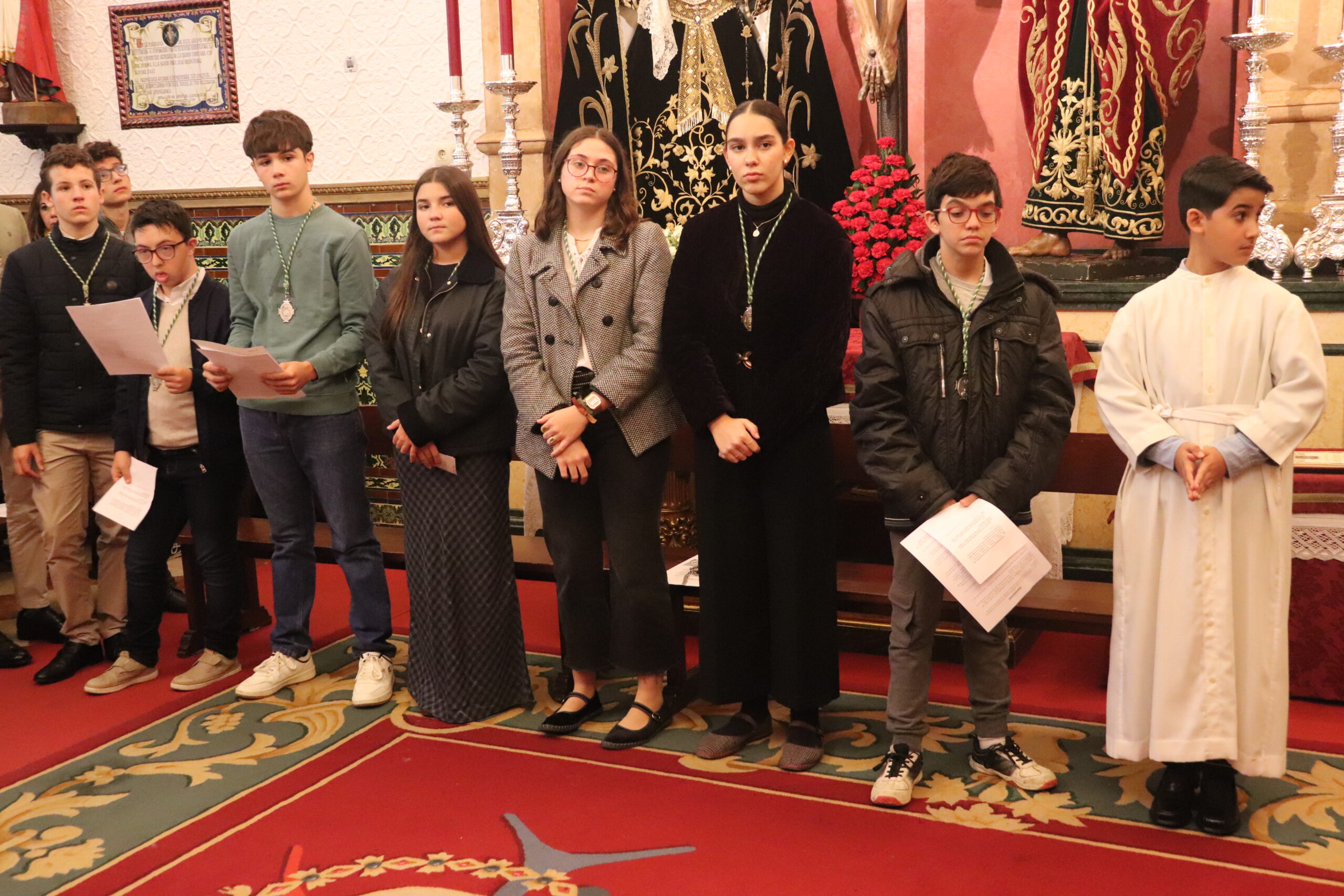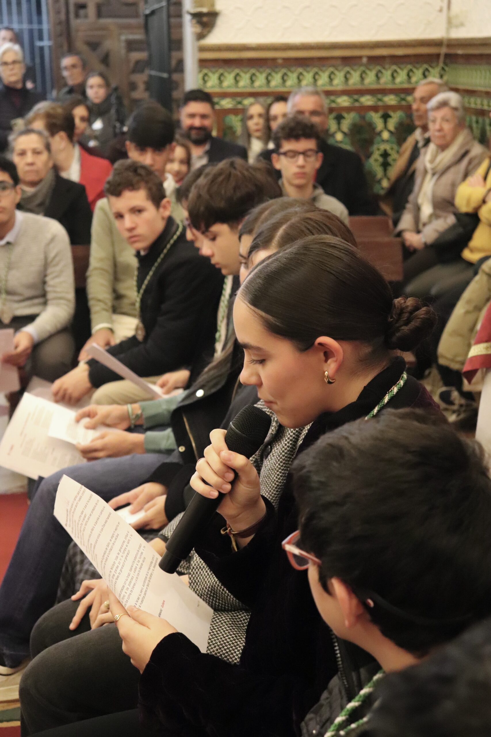 Asimismo, tras la Eucaristía Solemne en su honor tuvo lugar la bendición del Belén instalado en nuestra casa de Hermandad por el Grupo Infantil así como de la sobrepeana de plata realizada por el taller de orfebrería de Hermanos Delgado para Nuestra Señora de la Esperanza.